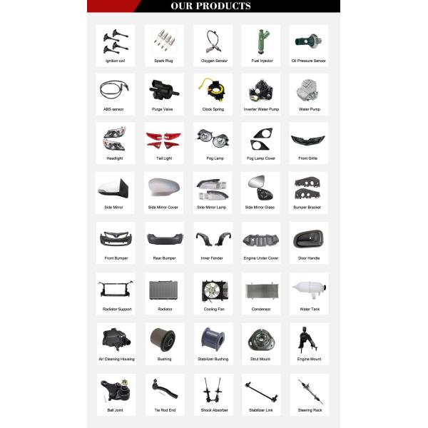 The main products of our company are as follows : upper and lower ball joints, tie rod ends, stabilizer bar, upper and lower suspension arm assembly series, suspension bushing, control arm bushing, suspension installation, dust cover series, shock absorption , brake pads, brake disc series, clutch plates, clutch pressure plate series.